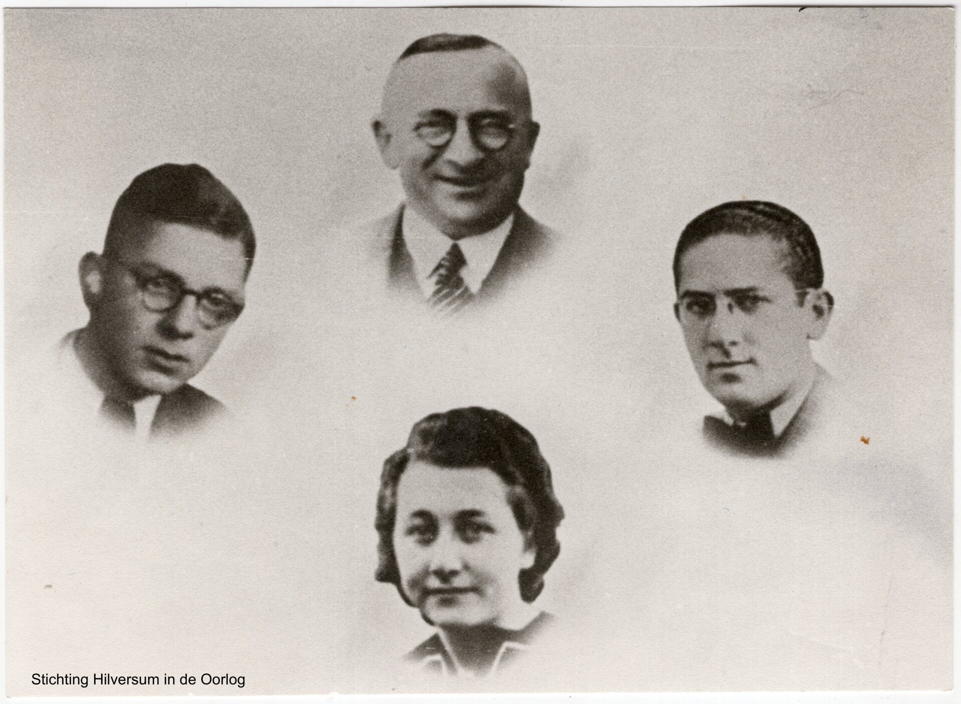 Kinderen van Jacob en Fenny Hamel. V.l.n.r.: Philip (Flip), Israël (Ies), Abraham (Bram), Evaline (Eef) en Philip (Flip) Krant, de echtgenoot van Eef. Collectie Stichting Hilversum in de Oorlog. Bruikleen familie Hamel