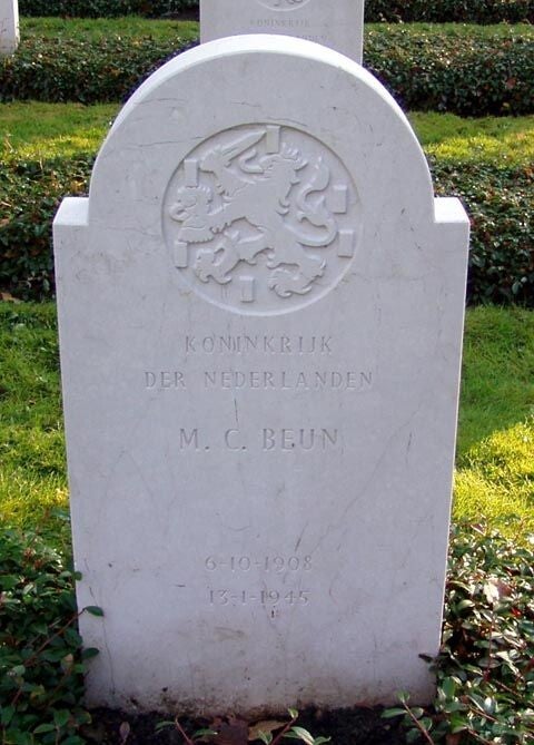 Grafsteen Marinus Cornelis Beun. Bron: Oorlogsgravenstichting